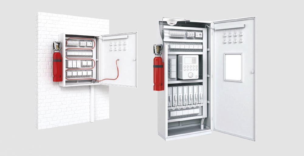 Когато трябва да се защити не цялото помещение, а само табло, шкаф или друг обект с по-малък обем, се предпочитат системите за пожарогасене вътре в табла.